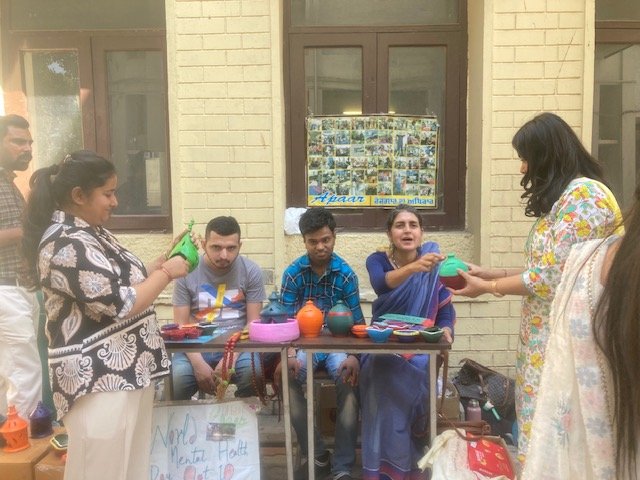APAAR ‘s handicrafts are sold in the festival season. This Diwali eve, Manish, Varun, Navneet and Gurnam visited HMV College to sell APAAR handicrafts. In the picture, two students interact with us. We met faculty interested in sending student volunteers to APAAR . Volunteering also serves the vital purpose of sensitising society through students. APAAR is always eager to recruit youth volunteer for our sheltered workshop. It is challenging in Jalandhar.