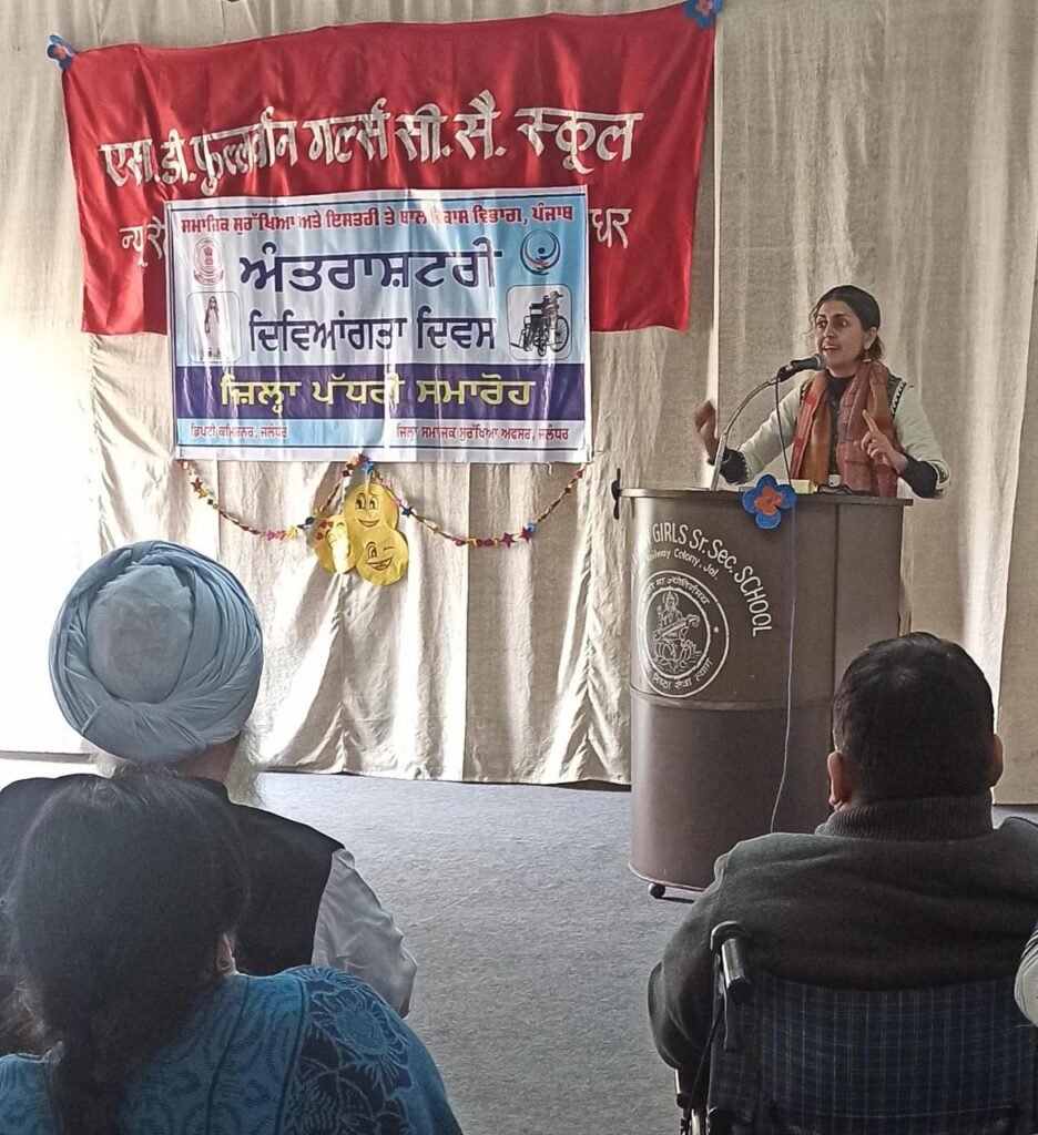 On 14th December 2021,the District Social Security Office, Jalandhar organized a world disability day program at SD Phullarwan Senior Secondary School, Ladowali Road, Jalandhar. Dr Navneet Bhullar was invited. Bharat and Akash accompanied her. Dr Bhullar pointed to the hard ecosystem for the disabled with no monitoring of quality in care homes nor consistent supervision of government school resource rooms. The DSSO chief has multiple posts in many districts and cannot do essential work for the disabled.