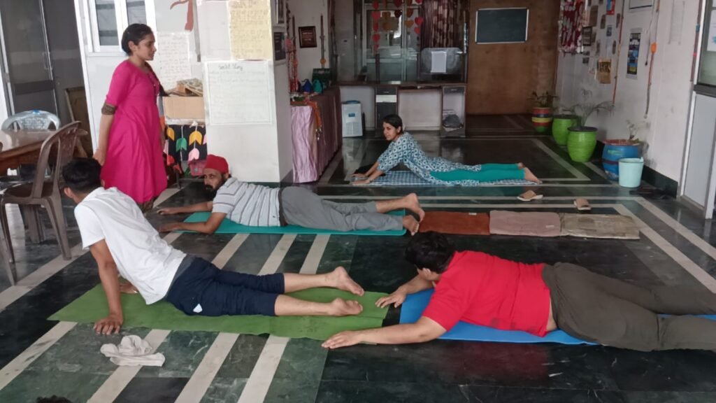 Ms Mamta Sharma, vocational assistant, leads yoga at APAAR. Not everyone participated, but four of us attempted to learn some yogasanas. Yoga…